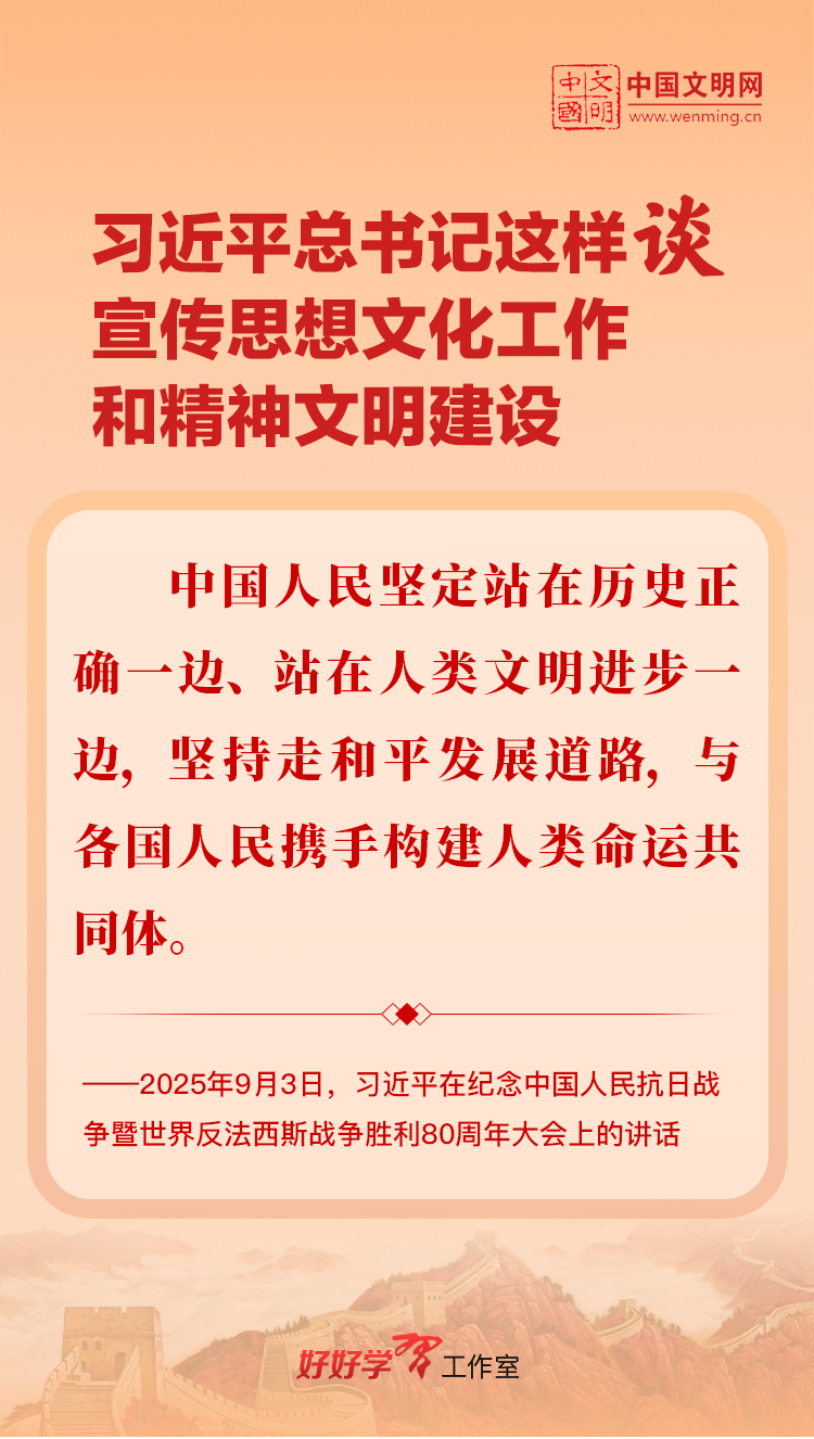 习近平总书记高度重视宣传思想文化工作和精神文明建设,念兹在兹、饱含期许。2025年,习近平总书记对宣传思想文化工作和精神文明建设作出一系列新的重要指示,发表一系列重要论述。让我们一起深入学习领会,更加自觉学习贯彻习近平文化思想,更好担负起新时代的文化使命。
